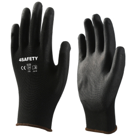 Black polyester with black pu coating gloves