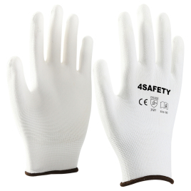 White Polyester with white PU coating gloves