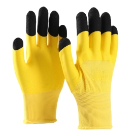 Yellowpolyester with yellow nitrile Half Coated Gloves