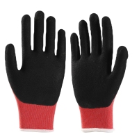 Red polyester with black crinkle latex coated gloves