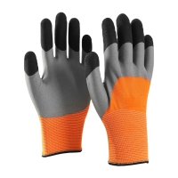 Orange polyester with gray nitrile Half Coated Gloves