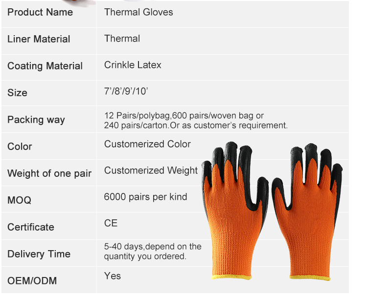 Crinkle Latex Coated Thermal Cold Use Winter Work Hand Protection Gloves For Sale