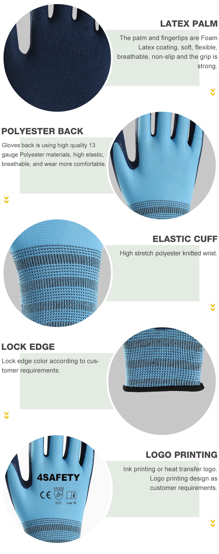 High Quality Industrial Safety Wholesale Construction Anti Slip Grip Heavy Duty Latex Coated Working Gloves