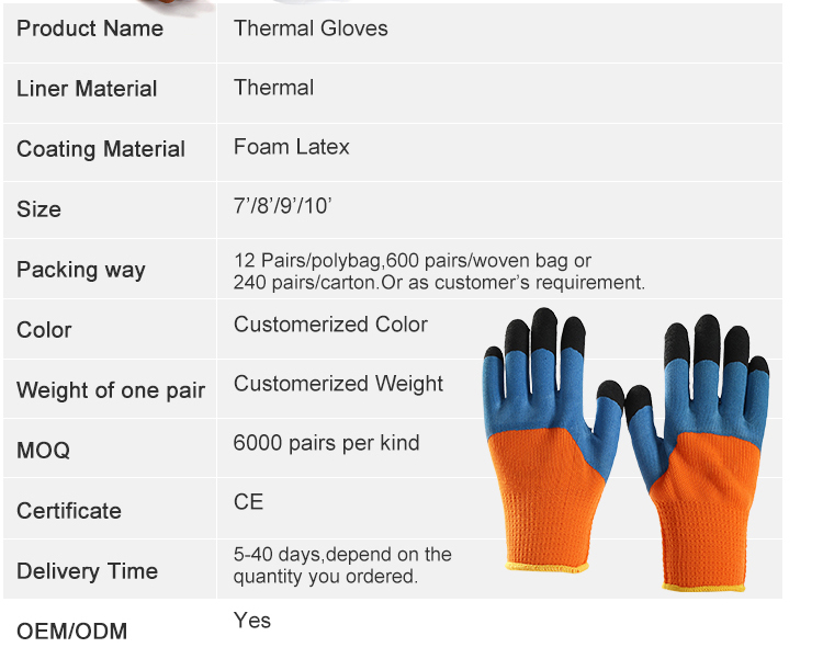 High Quality Foam Latex Thermal Cheap Winter Glove Warm Work Gloves For Heavy Duty