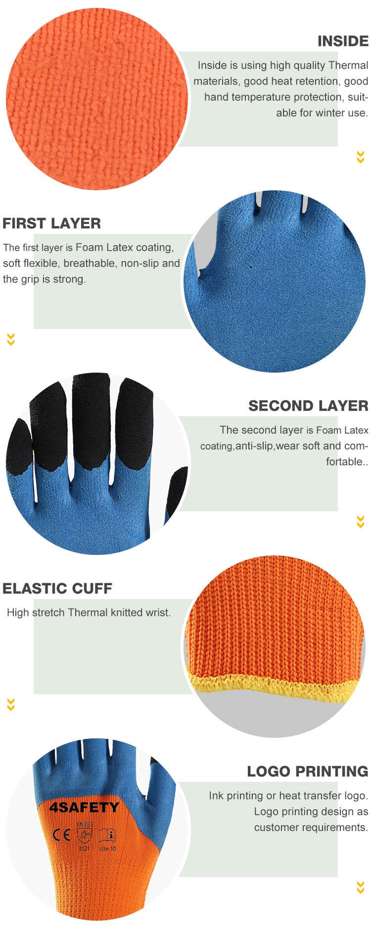 Crinkle Latex Coated Thermal Cold Use Winter Work Hand Protection Gloves For Sale