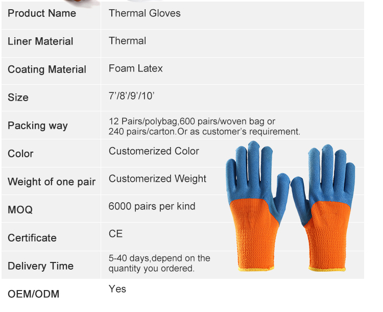 High Quality Foam Latex Thermal Cheap Winter Glove Warm Work Gloves For Heavy Duty