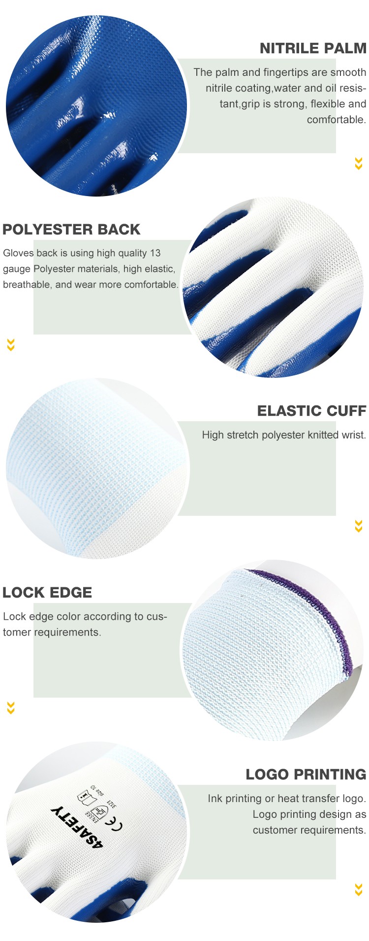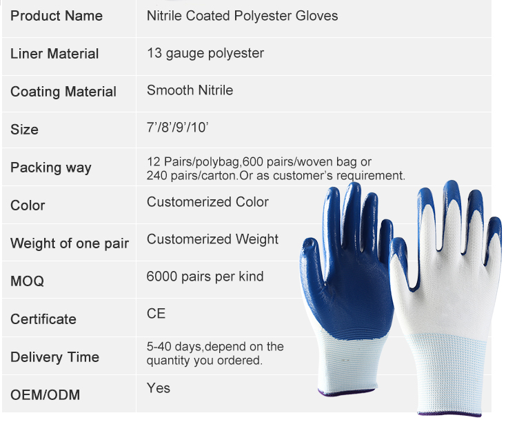 13G Polyester Industry Safety Cheap Black Nitrile Coated Gloves