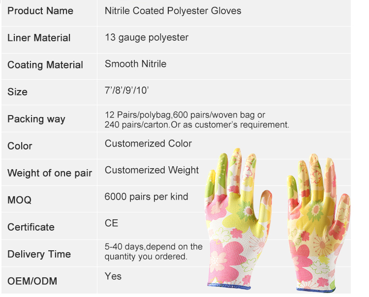 13G Polyester Industry Safety Cheap Black Nitrile Coated Gloves